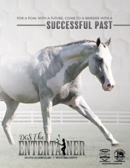 AQHA & APHA Registered. 2019 2X Top 10 Hunter Under Saddle APHA World Show and 2X Top 10 Hunter Under Saddle NSBA World Show. 2018 Pinto Horse of the Year, 1st Place Open Hunter Type Stallion Horse & 2018 Pinto Res World Champion Open Hunter Under Saddle. 4X APHA Reserve Champion in Halter Stallions.