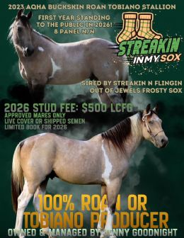 100% Roan or Tobiano Producer. First Year Standing to the Public